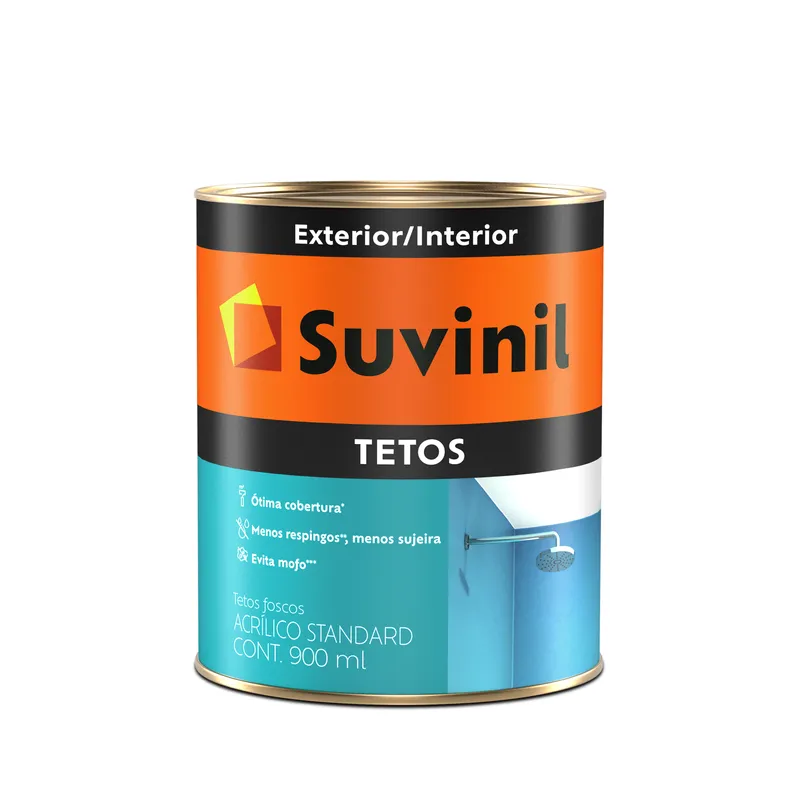 Suvinil Tetos é ideal para áreas úmidas como banheiros e cozinhas. Sua fórmula ajuda as superfícies a permanecerem com uma boa aparência por mais tempo. O baixo respingamento auxilia na hora de pintar. Muito menos sujeira e um resultado incrível.Além disso, ela é uma de nossas tintas antimofo. Sua tecnologia para prevenção de mofo mantém o visual do seu teto em dia.